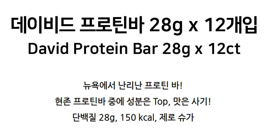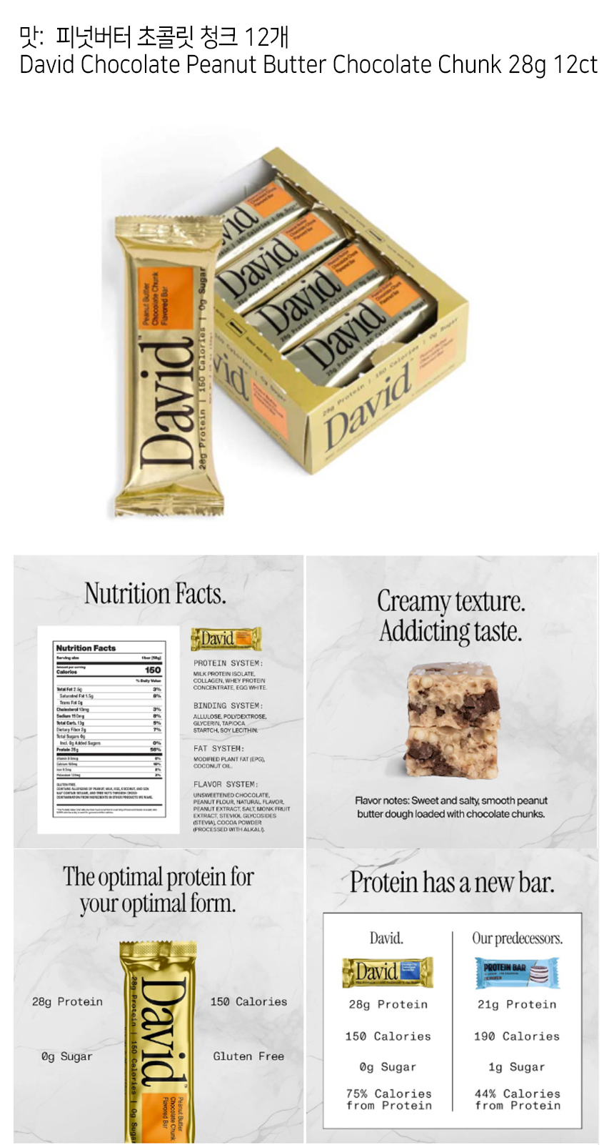 데이비드 프로틴바 단백질바 12개입 피넛버터 초콜릿 청크 12개입 David Protein Bar 12ct