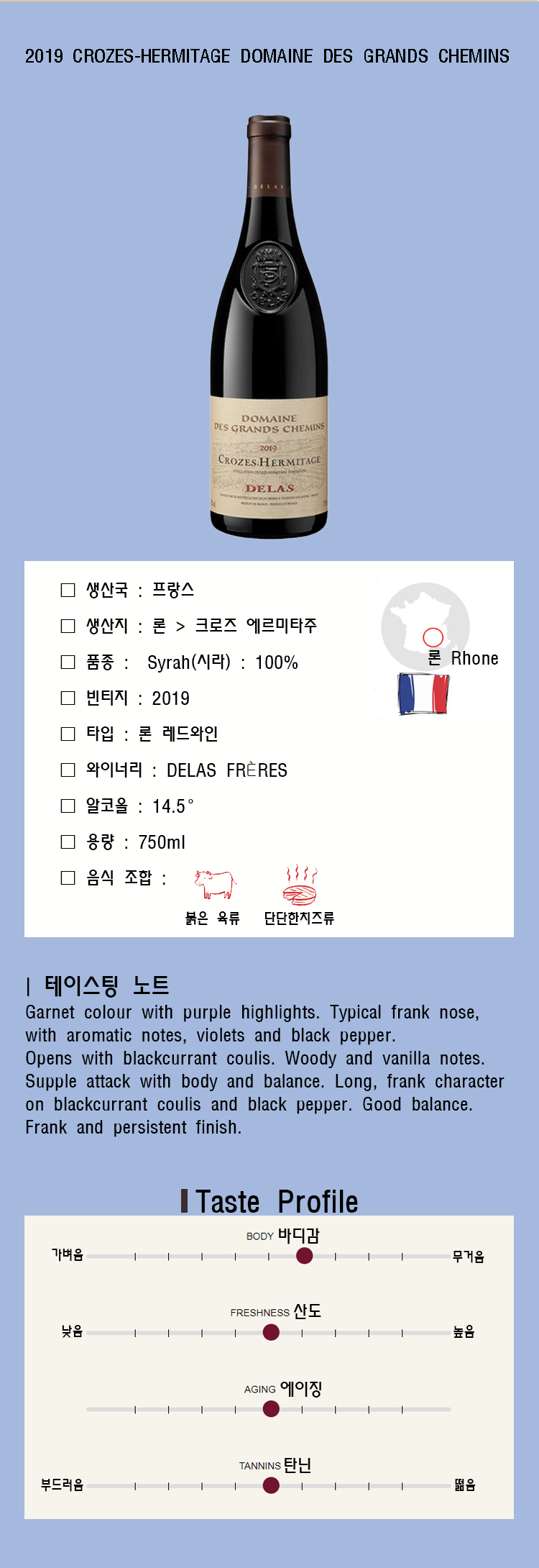 이 상품에 관한 리뷰를 작성하고 있습니다:2019 CROZES-HERMITAGE DOMAINE DES GRANDS CHEMINS