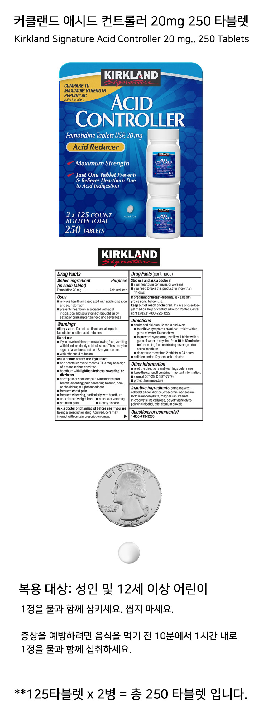 이 상품에 관한 리뷰를 작성하고 있습니다:커클랜드 애시드 컨트롤러 20mg 250 타블렛 Kirkland Signature Acid Controller 20mg., 250 Tablets