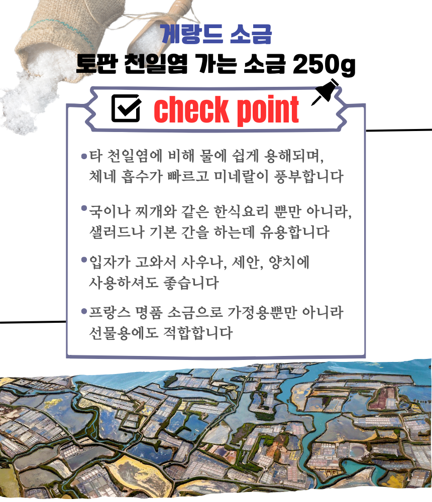 이 상품에 관한 리뷰를 작성하고 있습니다:게랑드 소금 프랑스 토판천일염 250g Le Paludier de Guérande Sel de Guérande 250g