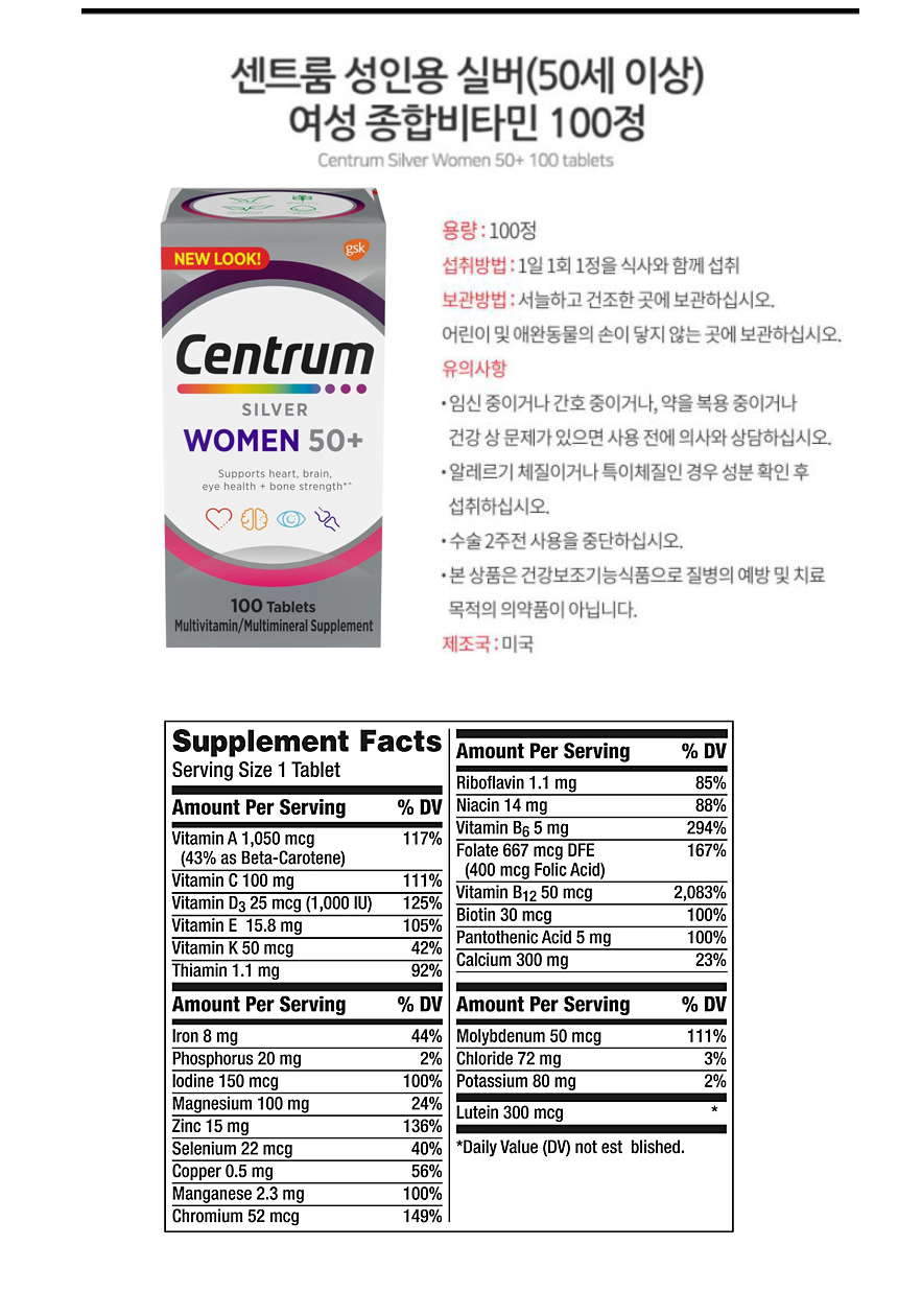 이 상품에 관한 리뷰를 작성하고 있습니다:[Centrum] 센트룸 성인용 실버 여성 종합비타민 100정 Silver Women 50+ 100 tablets