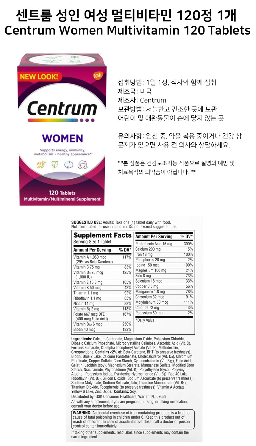 이 상품에 관한 리뷰를 작성하고 있습니다:[Centrum] 센트룸 성인용 여성 종합비타민 120정 Adults Under 50 Women 120 tablets