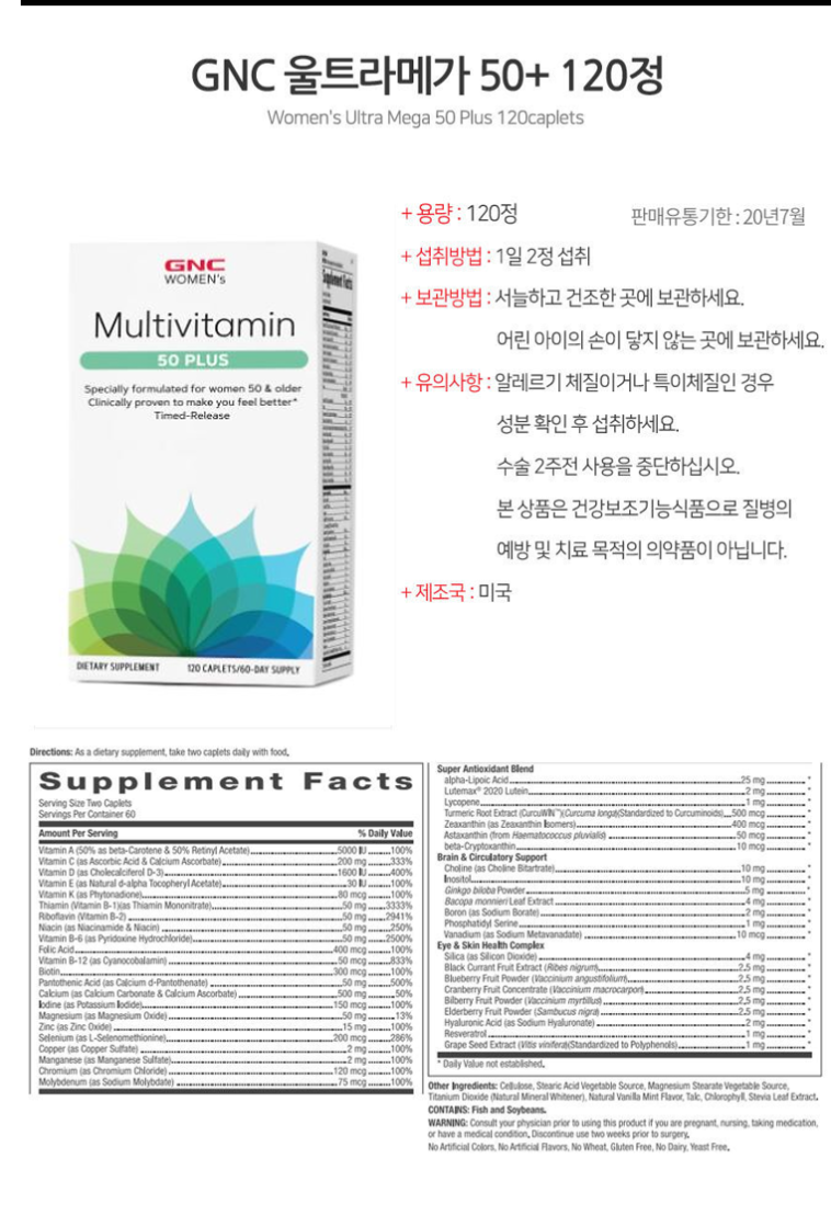 이 상품에 관한 리뷰를 작성하고 있습니다:[GNC] 여성용 울트라 메가 50플러스 120정 Women's Ultra Mega 50+ 120caplets