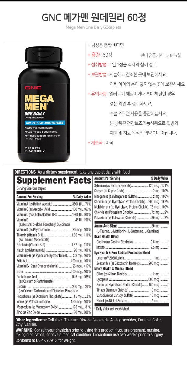 이 상품에 관한 리뷰를 작성하고 있습니다:[GNC] 메가맨 원데일리 60정 Mega Men One Daily 60caplets