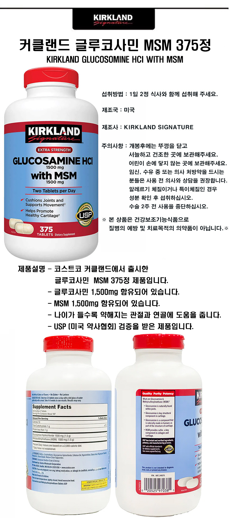 [Kirkland] 커클랜드 글루코사민 MSM 375정