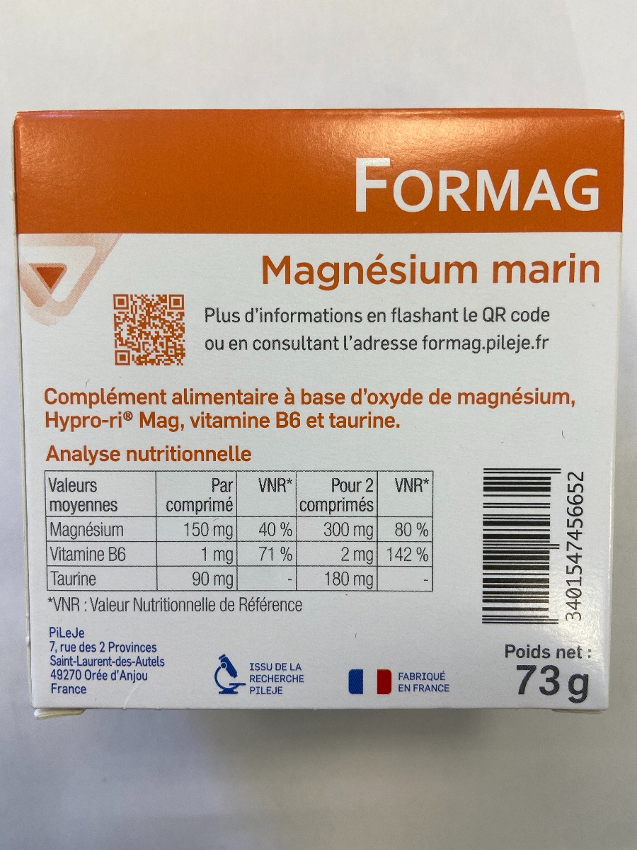 Formag est formulé à base d’un ingrédient spécifique - l’hyprorimag - qui associe magnésium issu d’eau de mer et fractions d’acides aminés (hydrolysats de protéines de riz)